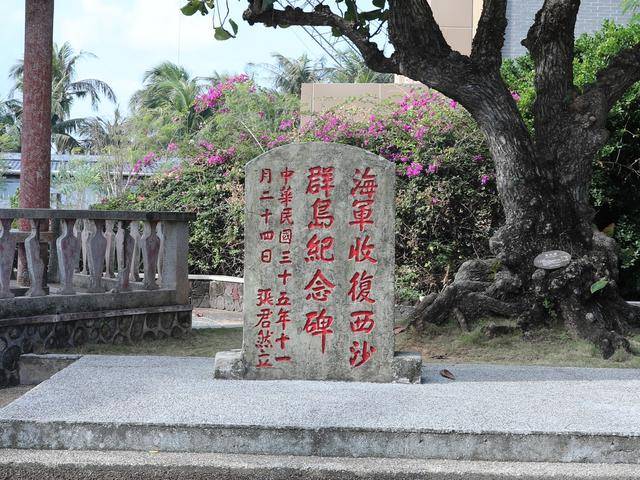 沿永兴岛宣德路前行,一块白色碑石面朝大海庄严屹立。石碑正面,“南海屏藩”四个朱红大字遒劲有力;背面镌刻着“海军收复西沙群岛纪念碑”。碑旁的石板清晰记载:“二战期间,日本非法侵占我西沙群岛和南沙群岛。1945年8月,日本战败并宣布无条件投降。中国政府……于1946年10月派遣海军舰队协助广东省政府接收南海诸岛……”