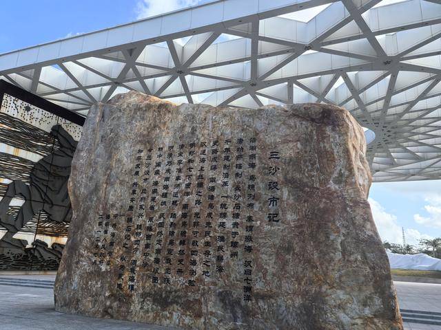 《三沙设市记》碑文仅169字,浓缩了中国在南海数千年的开发实践和建制管辖,充分体现了南海诸岛属于中国无可辩驳的历史和法理依据。