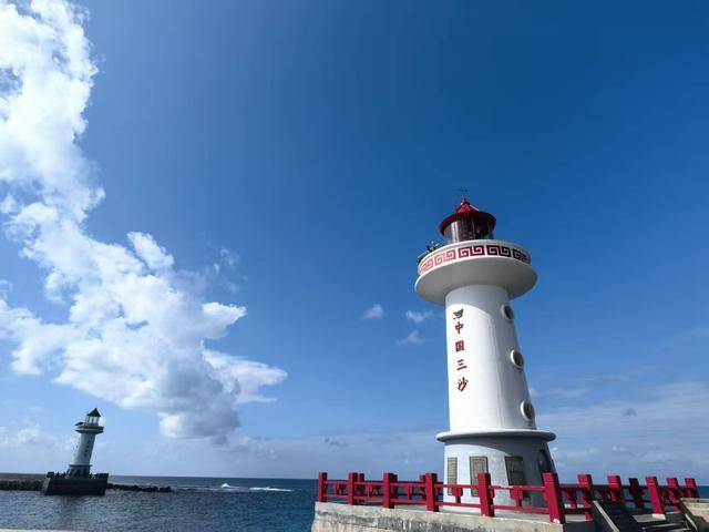 一望无际的碧波之上,两座白色灯塔高耸于西沙永兴岛码头,塔身上的“中国三沙”红色大字尤为醒目。这里是海南省三沙市政府驻地永兴岛。