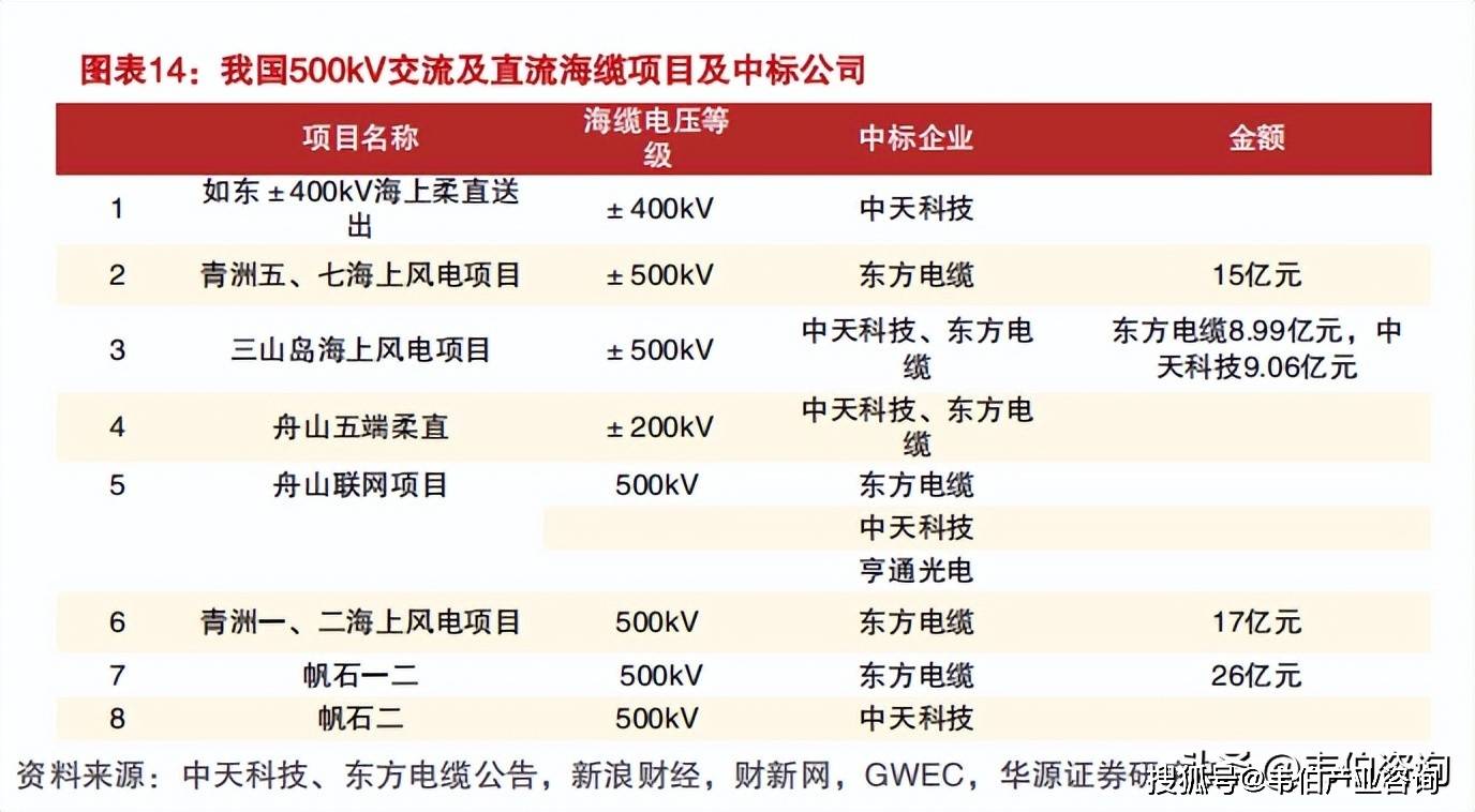 (1)东方电缆:中标青洲五七±500kV直流缆(15亿元)、三山岛±500kV直流缆(9亿元)、帆石一二500kV交流缆(26亿元);